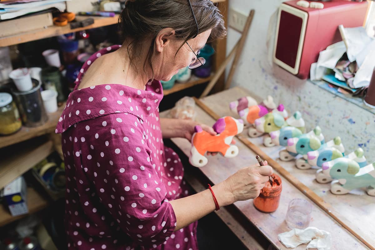Durante i miei anni di formazione, a parte lo studio di pedagogia, storia dell’arte e storia antica non compiuto, ho avuto occasione di lavorare con il telaio, legno, ceramica e oreficeria.