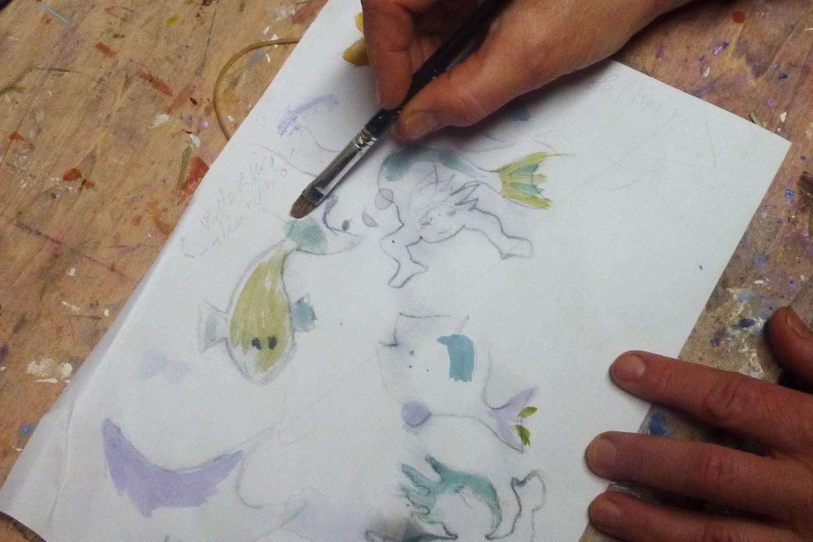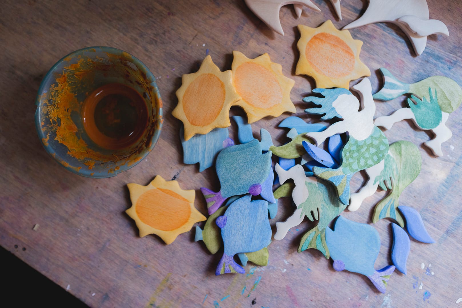 Dopo la colorazione a pennello applichiamo fondo e finitura unicamente con gommalacca decerata extra e gomma benzoe in alcool bianco. Due resine naturali atossiche usate anche nei settori farmaceutico ed alimentare. Per gli oggetti non colorati usiamo, a seconda dello scopo, olio di lino al 100 % pressato a freddo o vernice all’acqua specifica per giocattoli e mobili a norma EU DIN 71/3.