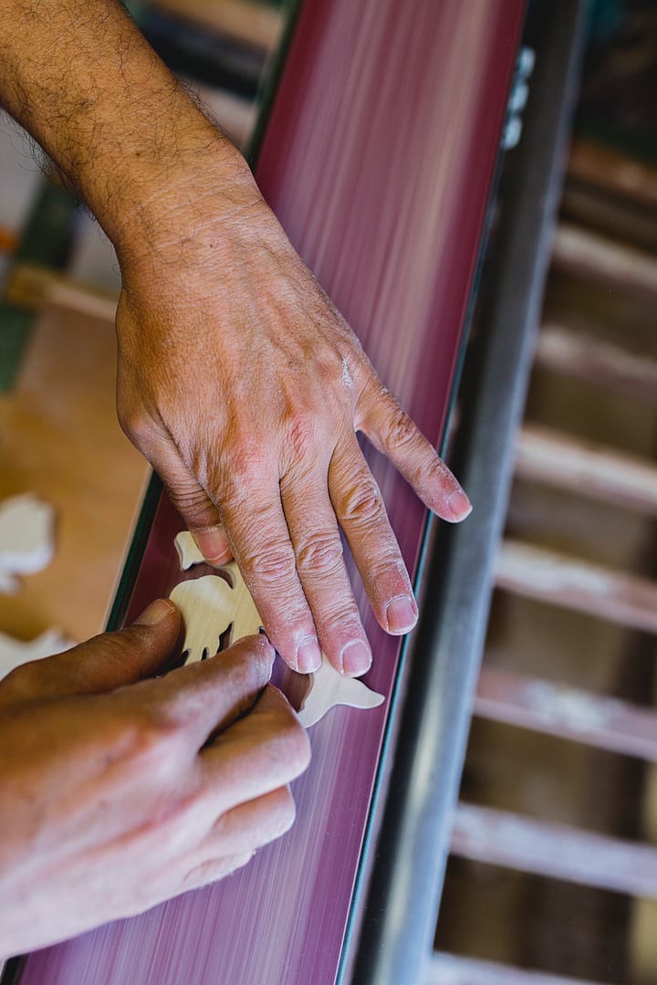 Usiamo colla vinilica senza formaldeide certificata per giocattoli, e per gli utensili da cucina colla specifica per il contatto con alimenti.